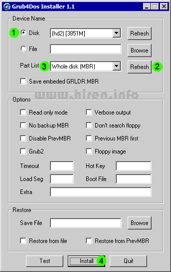 Bước 4: Chạy file grubinst_gui.exe với quyền Administrator, làm theo hướng dẫn trong hình.